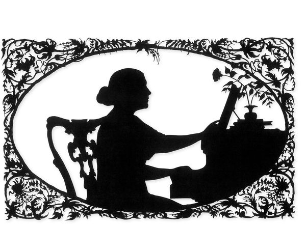 While in Berlin, Mochi married a young voice student from America. Together they led a life filled with art and music. Their apartment was always open to friends in the arts, reminiscent of his childhood in Florence. All the while, he continued to cut his paper outlines, mastering his technique with diligent practice and gaining wider acclaim as a “poet of shadows.”
